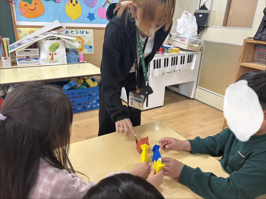 講師の先生に、いぬ・ぞう・ぱんだの折り方を教えてもらい、