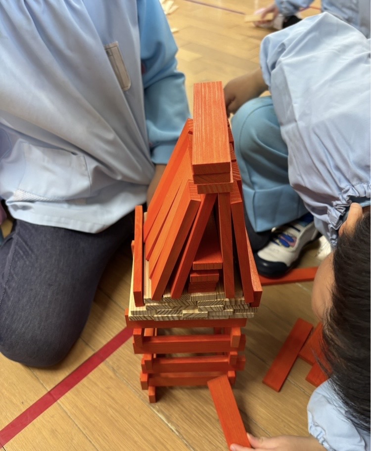 年中さん、年長さんは、新しく届いたオレンジ色のカプラで遊びました😊