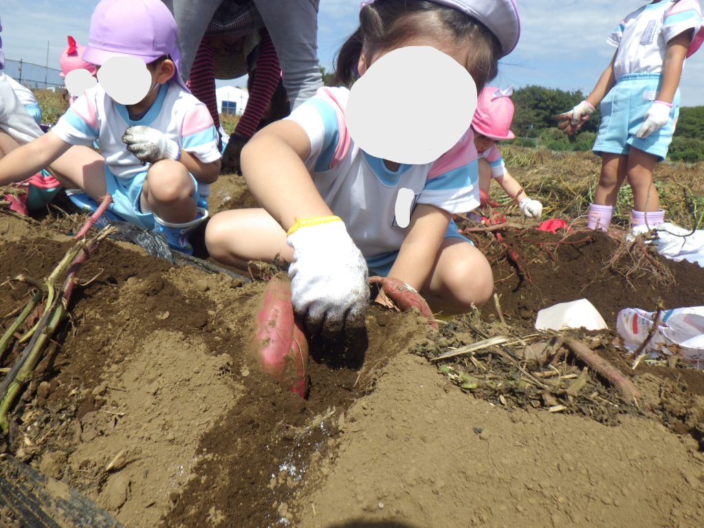 年中さんは、お芋の大きさや形の変化を楽しみながら、楽しく掘ることができました😆
