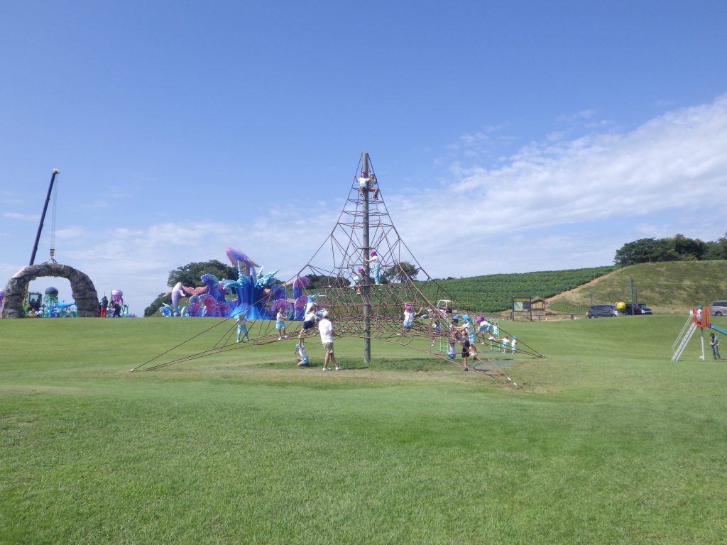 年中・年長さんはアスレチックゾーンで遊び、幼稚園にはないターザンや網ピラミッドが子ども達に大人気でした!!