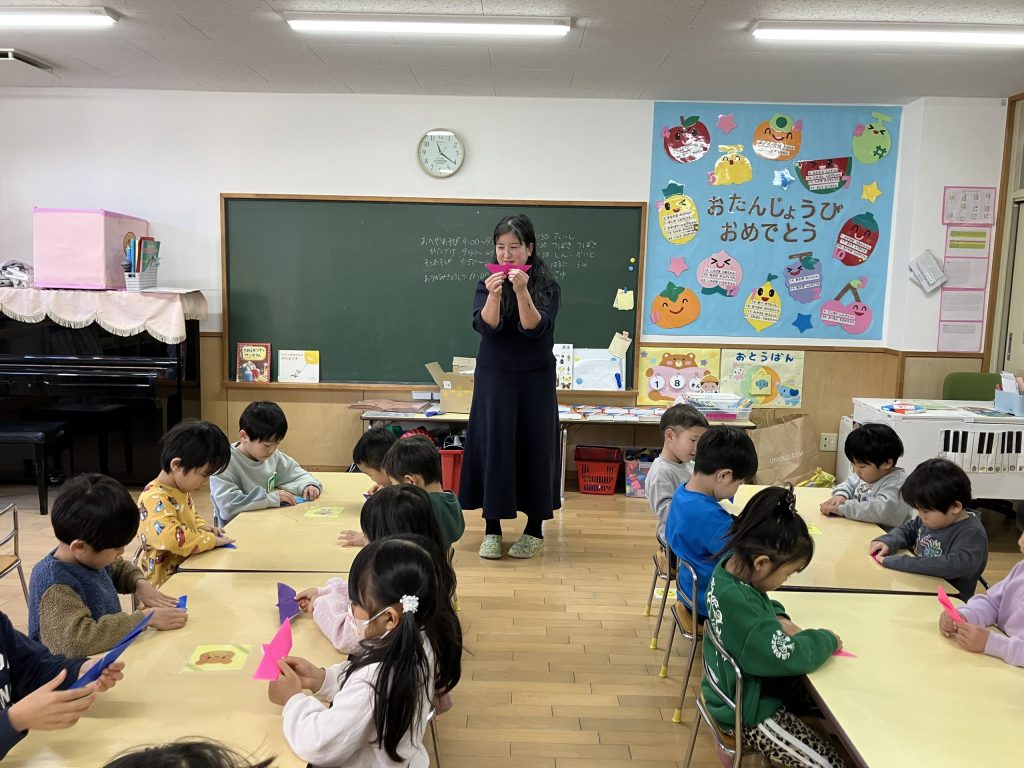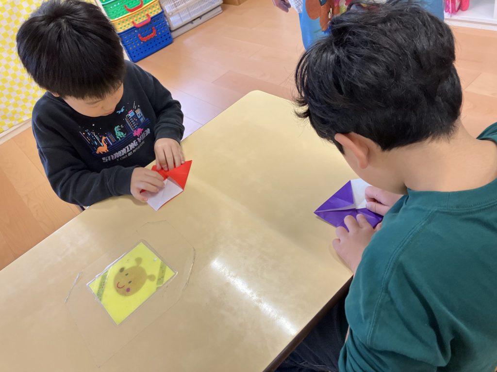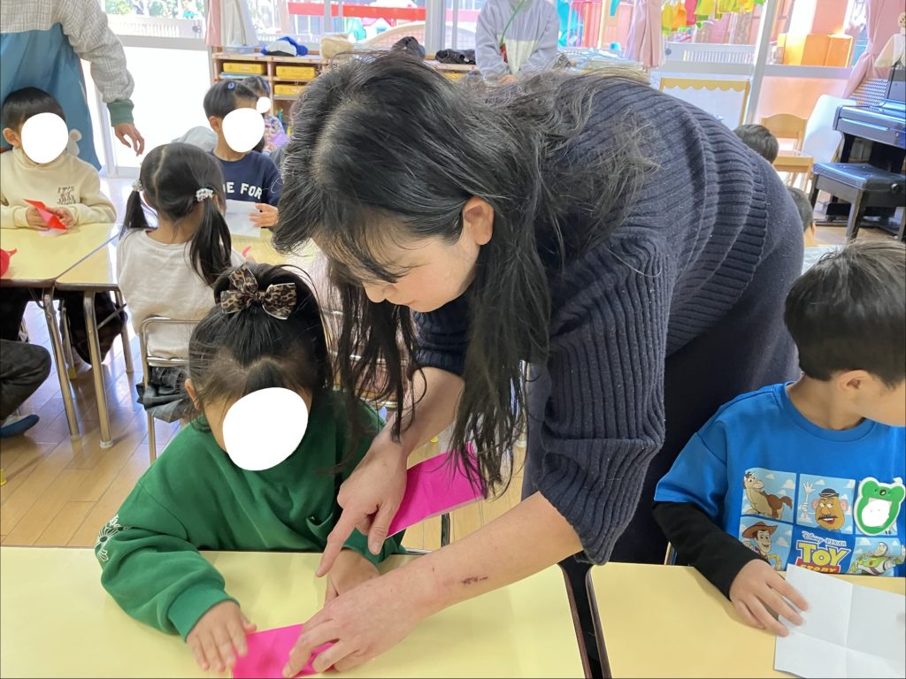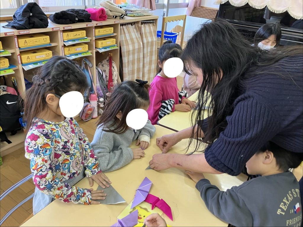 冬休みの預かり保育で折り紙をしました✨ 年中長児を対象に、外部よりお越し下さいました“ゆきえ先生”がクルクルコマとサンタクロースの折り方を丁寧に教えてくれました🎅 少し難しい部分もありましたが自分の力で最後まで完成させて喜んでいた子ども達です⭐️ 折り紙は想像力も働き、達成感を感じたり手先が器用になったりしますので是非、ご家庭でも親子で折り紙を楽しんでみてくださいね😊 預かり保育で折り紙をしました2025-12-232025-12-23https://oyuminominami.com/new/wp-content/uploads/2023/04/oyumino_log_4.png認定こども園・おゆみ野南幼稚園https://oyuminominami.com/new/wp-content/uploads/2025/12/img_2043.jpeg200px200px